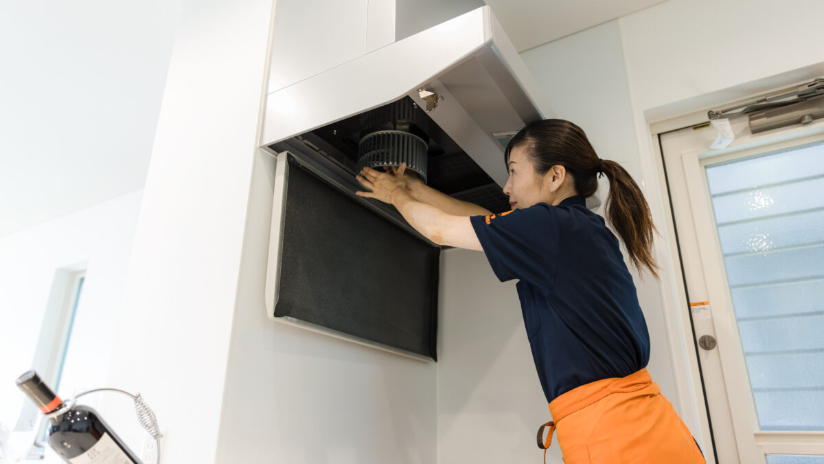 油汚れでベトベトになりがちなレンジフードは、特に専門技術をもつプロにまかせたいポイント。パーツを分解し、細かな汚れまで徹底洗浄します。